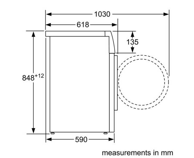 Dimensions for the Bosch washing machine: (H)84.8 x (W)59.8 x (D)59.0cm